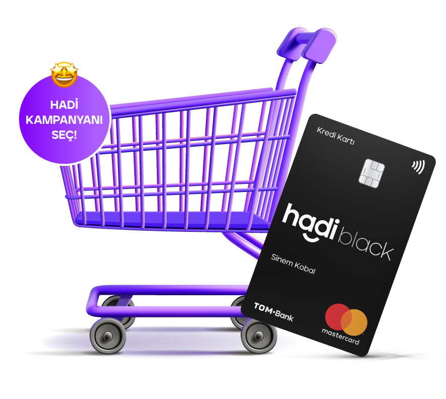Sen de Hadi Kredi Kartı'na başvur! Ömür boyu kart ücreti ödemeden tüm harcamalarını güvenle yap! A101, English Home ve Eve alışverişlerinden %10’a varan nakit iade kazan! Üstelik altın biriktirme talimatı ver, kolayca birikim yapmaya başla.