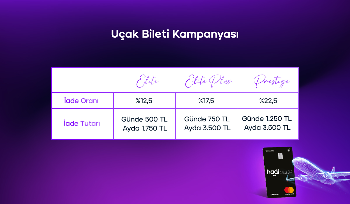 Özel Bankacılık Hadi birikim segmentinize göre uçak bileti alımlarınızda %22.5’e varan iade ile ayda 3.500 TL’ye kadar iade kazanmanız mümkün!