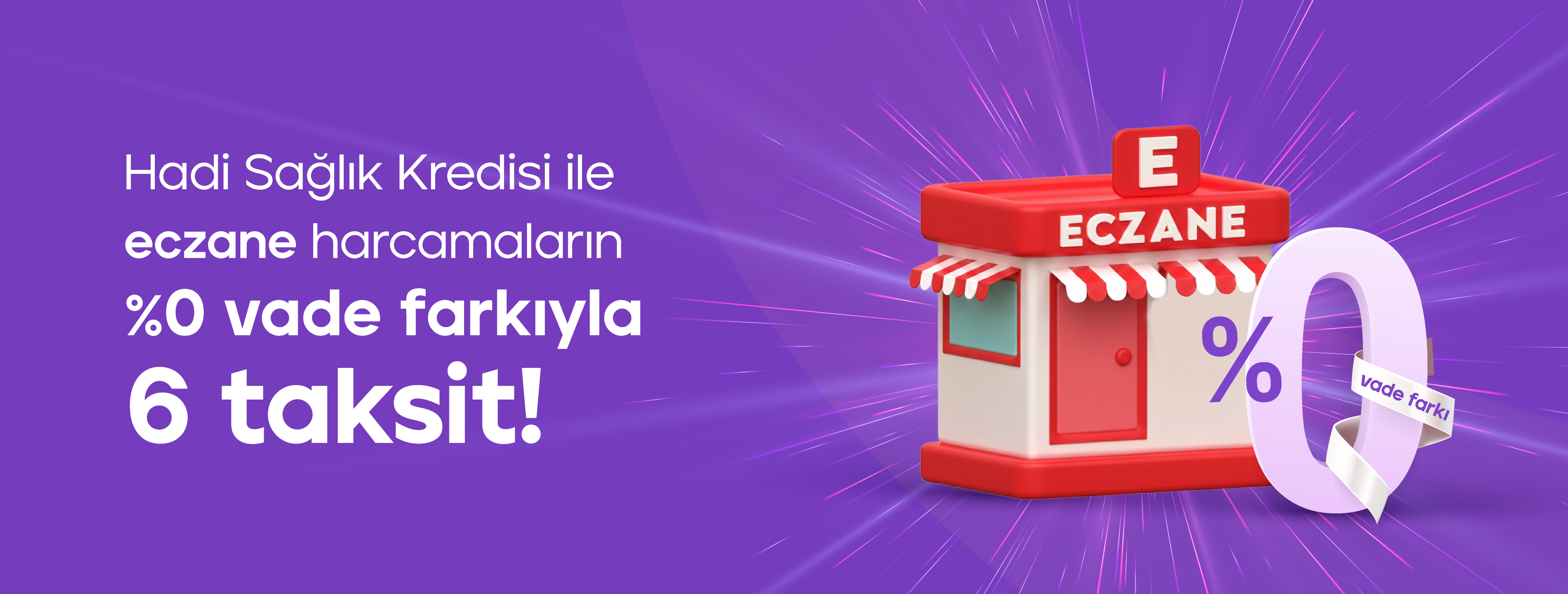 Taksitli Kredi limitini saniyeler içinde öğren, ihtiyaç anında eczane harcamanı Hadi Sağlık Kredisi ile 6 taksitte öde!