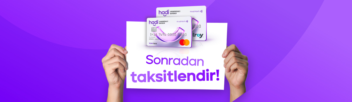 Hadi Kredi Kartı ile yaptığın peşin işlemlerini, Hadi uygulamasından 12 aya varan vadeler ile sonradan taksitlendir!